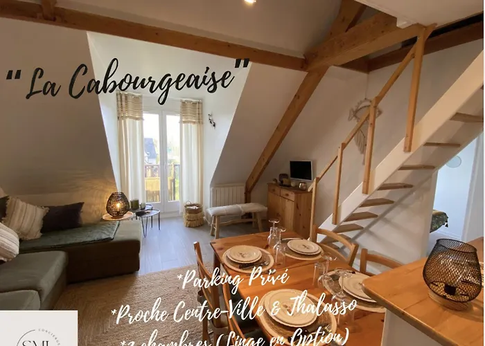Апартаменты La Cabourgeaise-Proche Thalasso Et Centre De Cabourg с видом на сад расположены на расстоянии 2 км от Пляжа де Кабур. Кроме того, в апартаментах есть Wi-Fi и бесплатная чaстная парковка.